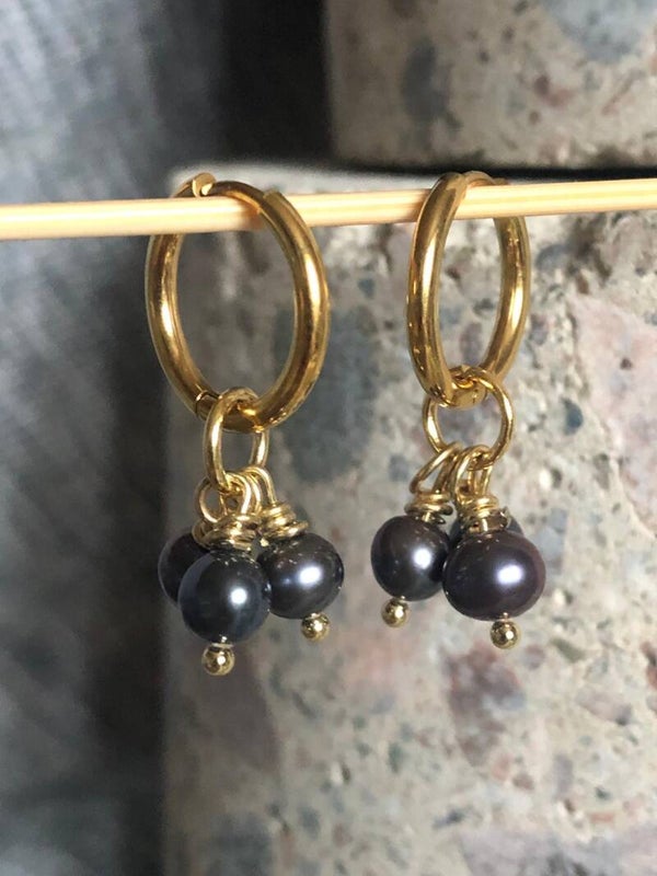 Allergiavapaata kirurginterästä 18 karaatin kultauksella ja makeanvedenhelmillä. Helmien koko noin 5,5-6 mm.